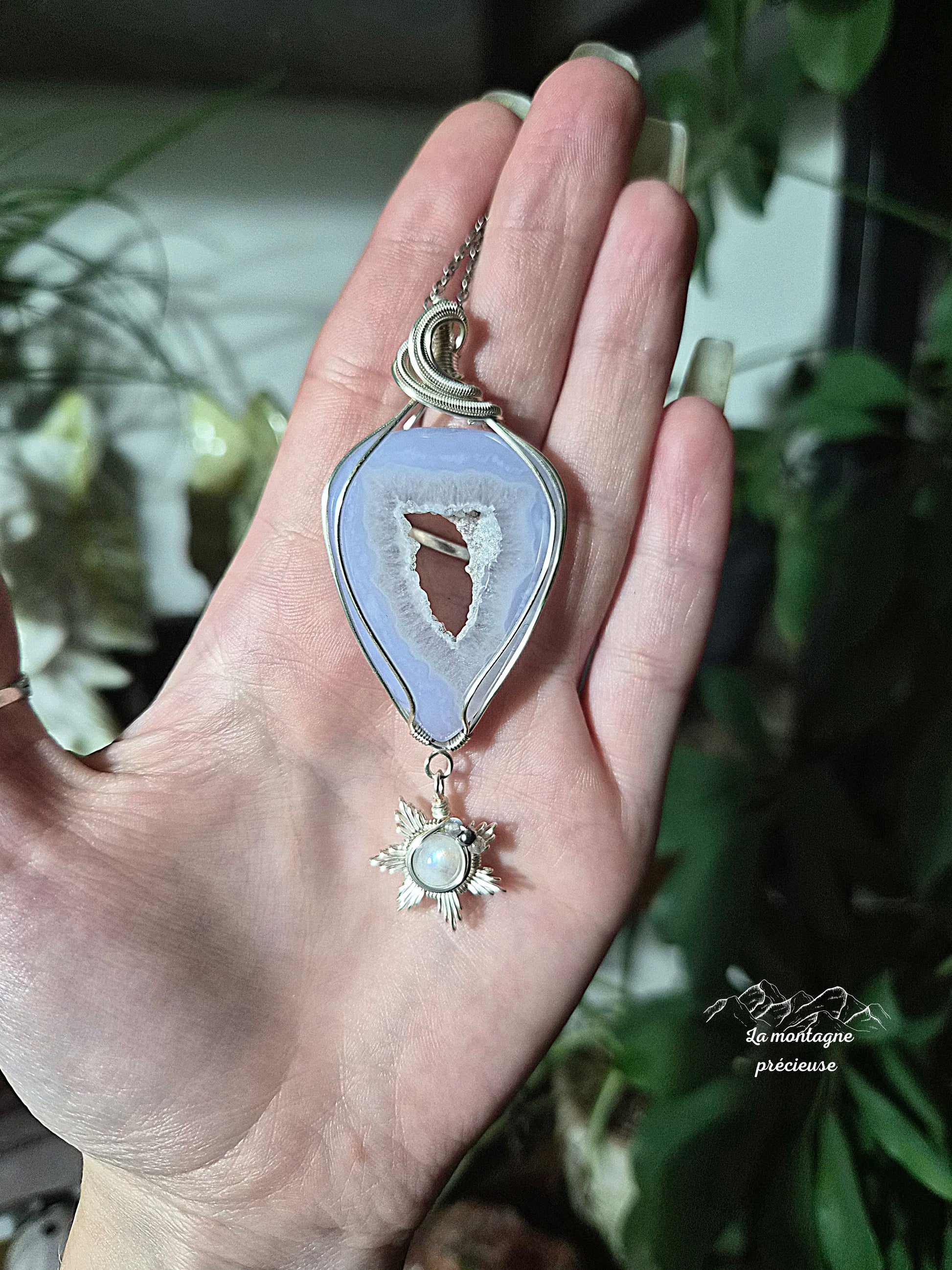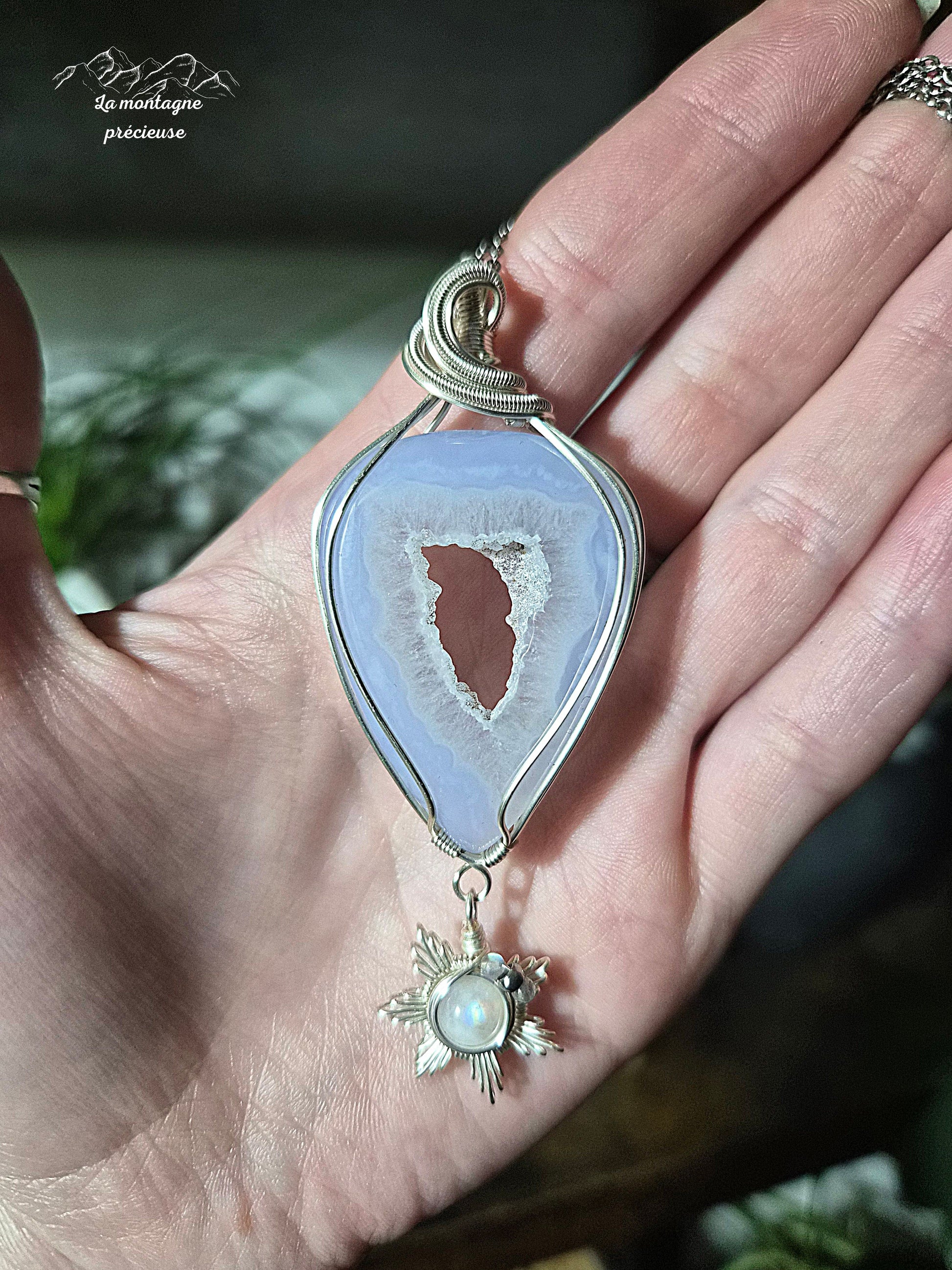 Pendentif en agate blue lace et son flocon